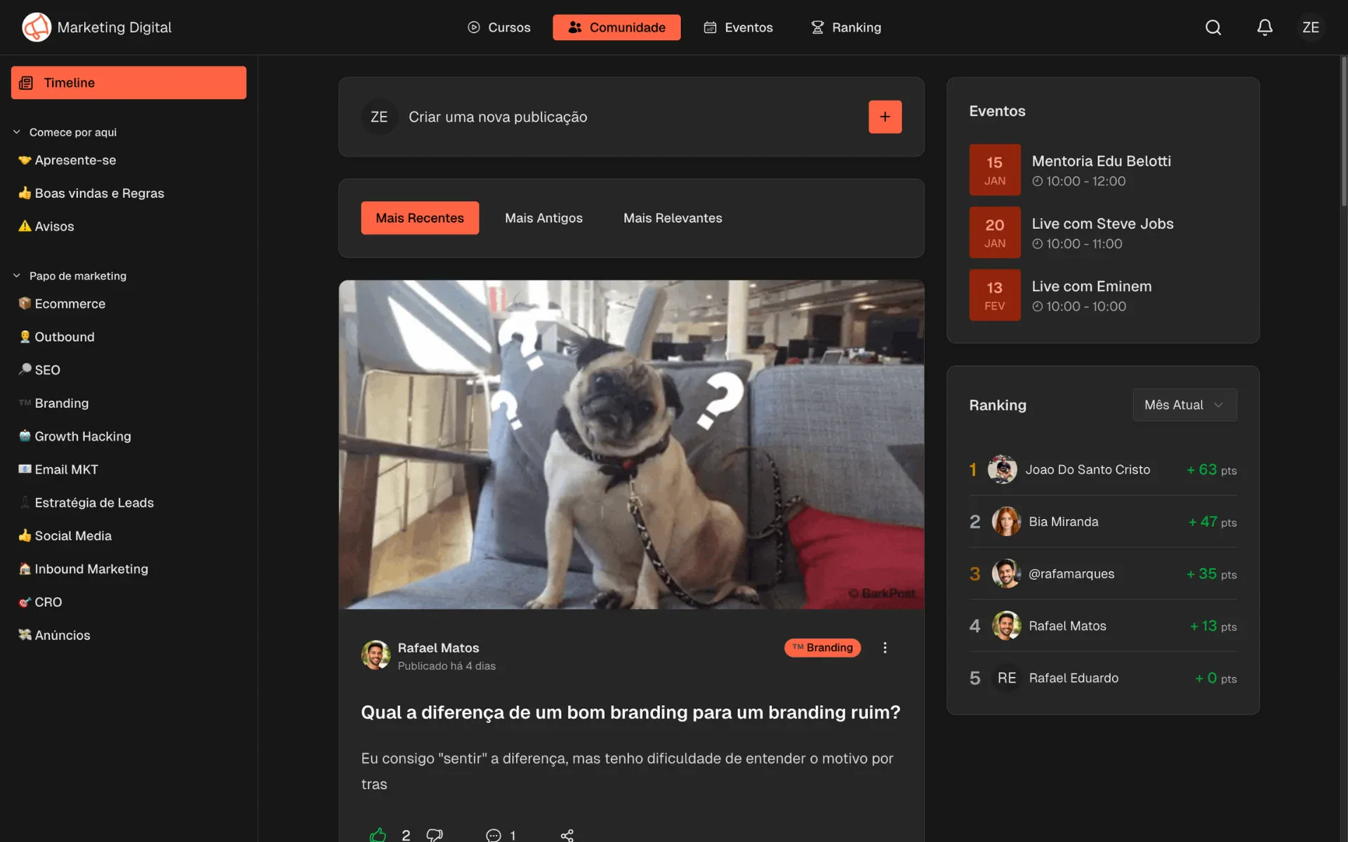 Com o crescimento do mercado, o aluno não queria mais só cursos. Ele queria um lugar para aprender e engajar.